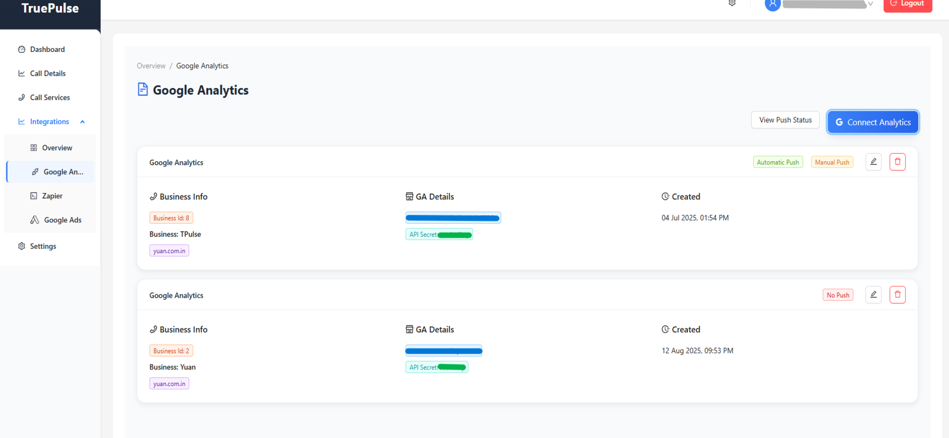 Connect TRUE Pulse with Google Analytics to push call data, track conversions accurately, and gain deeper marketing insights.